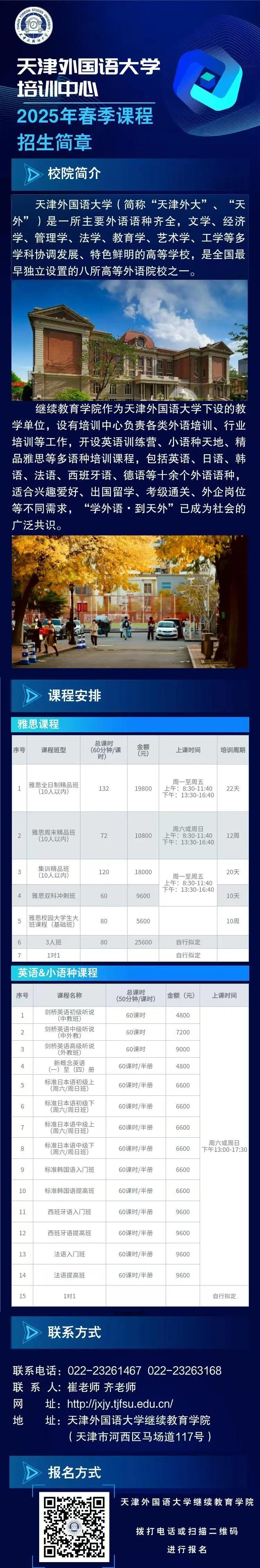 咨询电话:022-23261467(培训中心)、23242205 学历教学部(自考)、23280228 学历教学部(成教)