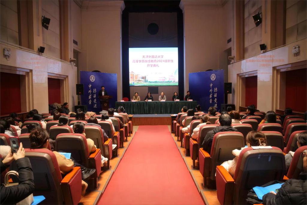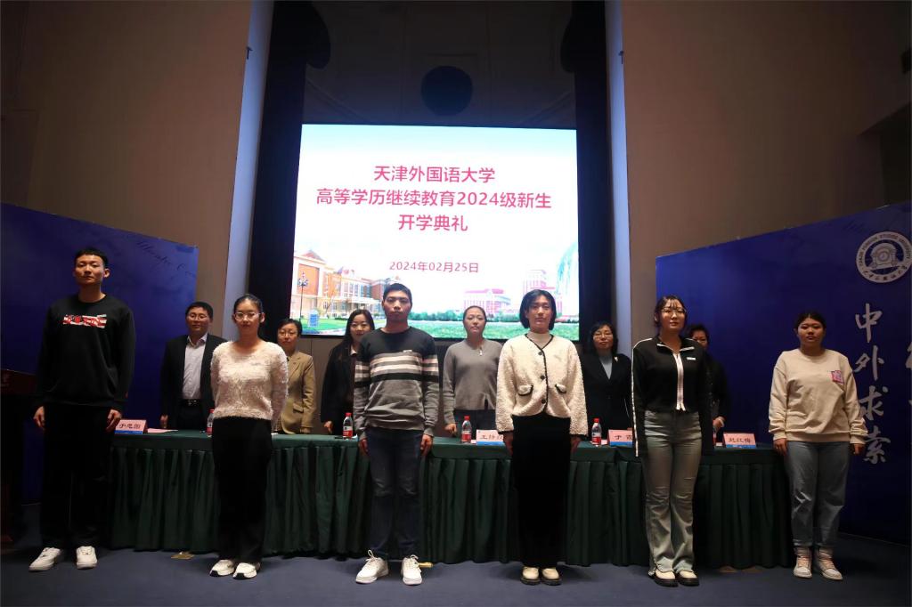 最后,田芃代表公司全体师生对2024级新同学在公司60周年校庆来临之际考入天外、成为天外一员表示热烈祝贺。在简要介绍公司基本情况和历史沿革后,她对全体新生提出三点希望:一是要提高认识、开阔视野,全面贯彻党的二十大精神,把学习宣传贯彻习近平总书记视察天津重要讲话精神作为首要政治任务;二是要善于学习、勇于实践,秉承“中外求索,德业竞进”的校训,坚定理想,立志成才,积极投身天津“十项行动”,为加快建设社会主义现代化国际大都市作出新的贡献;三是要坚守信仰、砥砺深耕,在求学路上保持初心,心怀感恩、家国同行,芳华待灼、履践致远,“圆梦”大学成为最好的自己。
