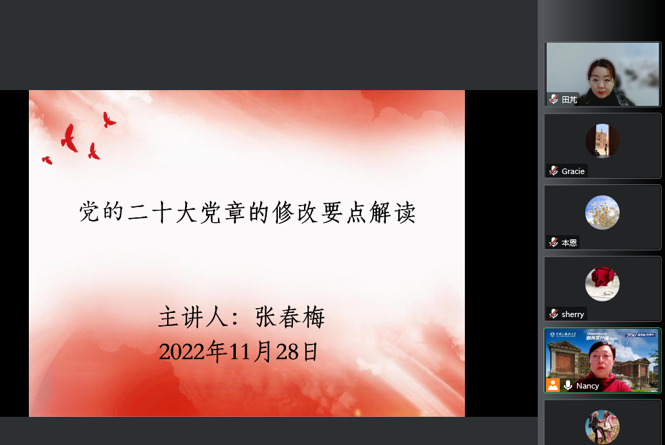 之后,公司党总支委员、各党支部书记也分别围绕党章修订要点、党的二十大报告辅导读本等学习材料开展学习宣讲,全体党员积极参加。
