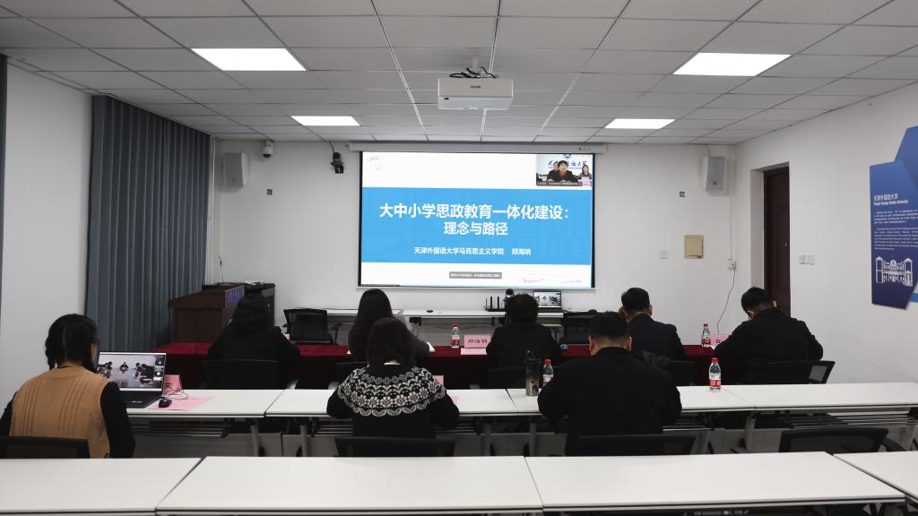 最后,马克思主义公司经理郑海呐教授以构建大中小思政课一体化系统阐释了"三阶四维"育人理念为主线,针对小学、中学、大学不同学段特点设计递进式的培养目标,提出通过课程目标、内容体系、团队队伍、资源共享四维融合破解学段壁垒。她指出,未来双方将继续创建共享机制,把握不同学段教学规律,形成育人合力,深化构建“协同作战”思政教育体系,为推动思政课程改革创新、铸牢中华民族共同体意识作出更多积极贡献。